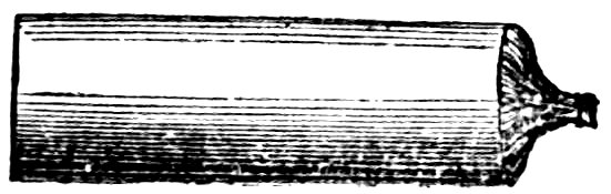 If you want a former round which to make the case, or mortar, as it is called, of the two and a-half inch size, you can generally find one ready made at the draper’s. They have them as rollers for silks, &c., and the above is one of their sizes. I have found one of these very convenient.
