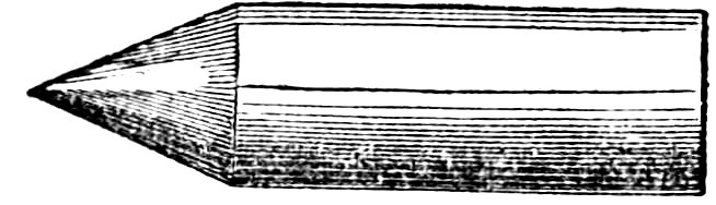 187The object of the conical clay head to the case is that the fire may not burn the holes larger. If the holes were simply bored through the paper case they would be burnt much larger than they were originally made. Nevertheless, if it be thought too troublesome to make the hollow clay cones, as I have suggested, a very fair five-pointed star may be made by driving in a flat end of clay, and boring just below it into the composition.