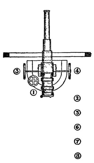 He hauled up on the head clews and presently a five-inch shell appeared above the top of the reel. The shell was fastened to the end of the hammock lashing, at the other end of which was attached the ring. The lashing led over the hook, and the weight of the shell was just sufficient to keep the hammock in its place. As I finished inspecting the clever contrivance, the boatswain's mate piped tattoo.