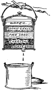 The Water Wheel. Surveying for the Water Wheel. Towers for the Water Wheel. The Wheel. The Buckets. The Paddles. The Receiving Trough. Setting Up the Towers. Mounting the Water Wheel. Cooling the Filter Barrel. The Canvas Bucket. Mr. Halliday’s Water Wheel. | |
