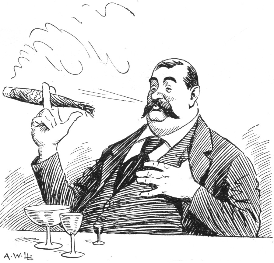 "Well, of course that was a bit of a set-back; still I thought, 'Are we down-hearted?' So I trotted on round to old Simkins—remember that stockbroker chap we ran into at the Gaiety the other evenin'? He's a decent sort of fellow; clever an' all that too—but not by way of overworkin' himself.