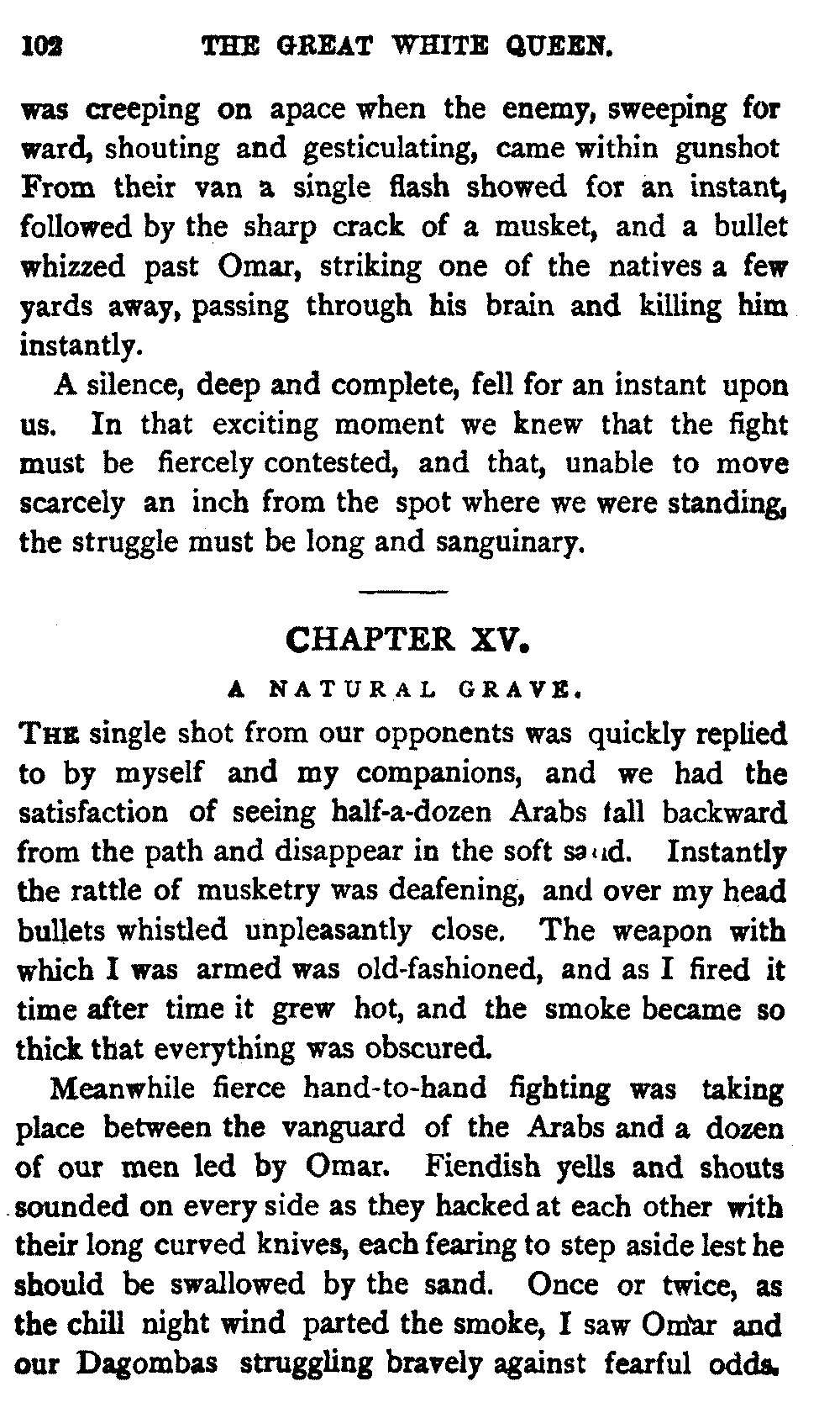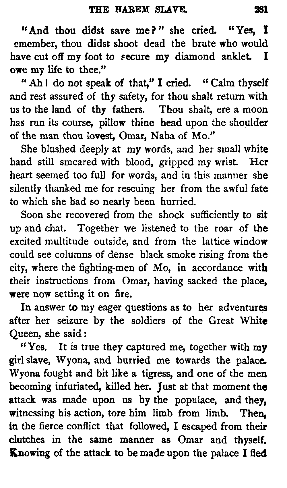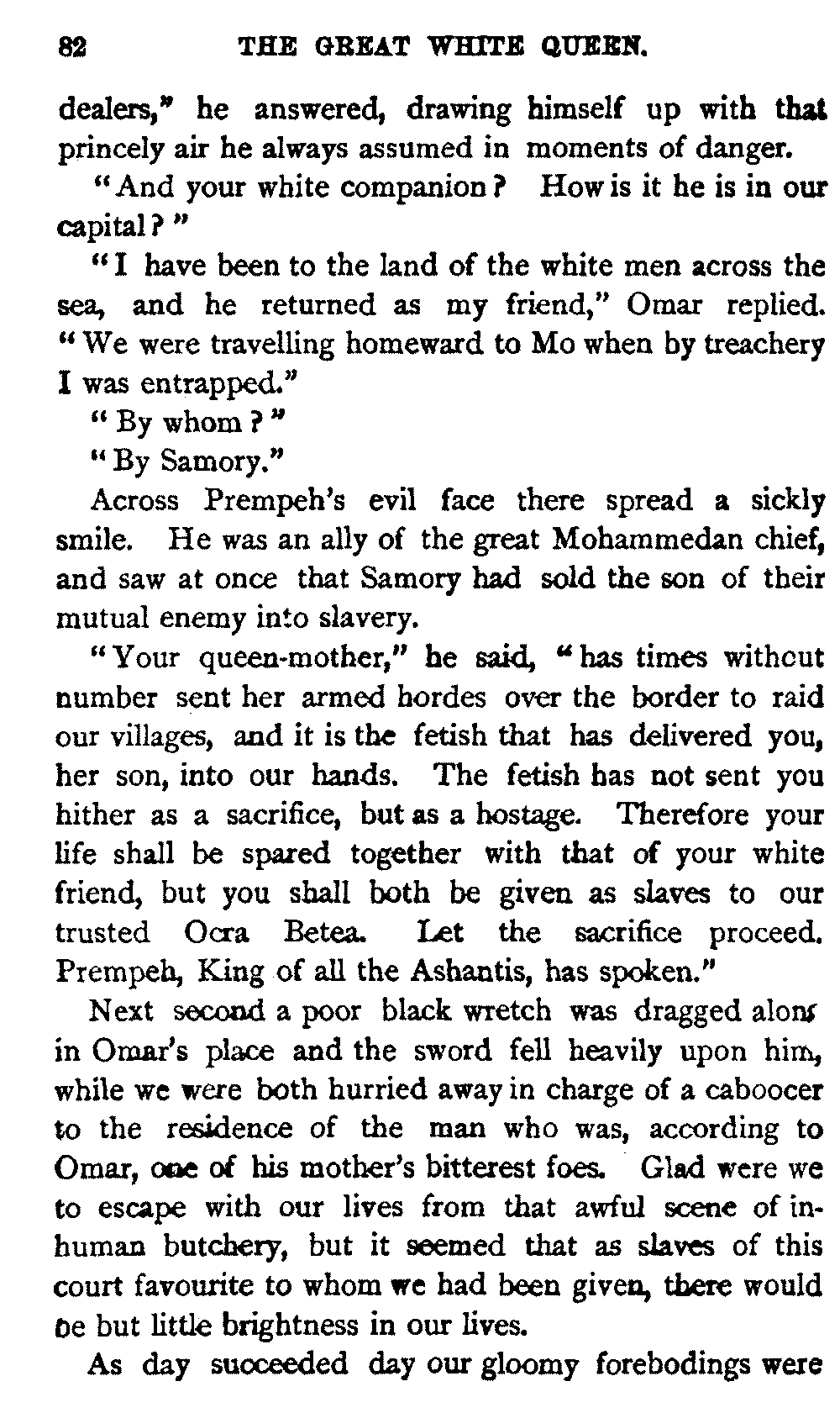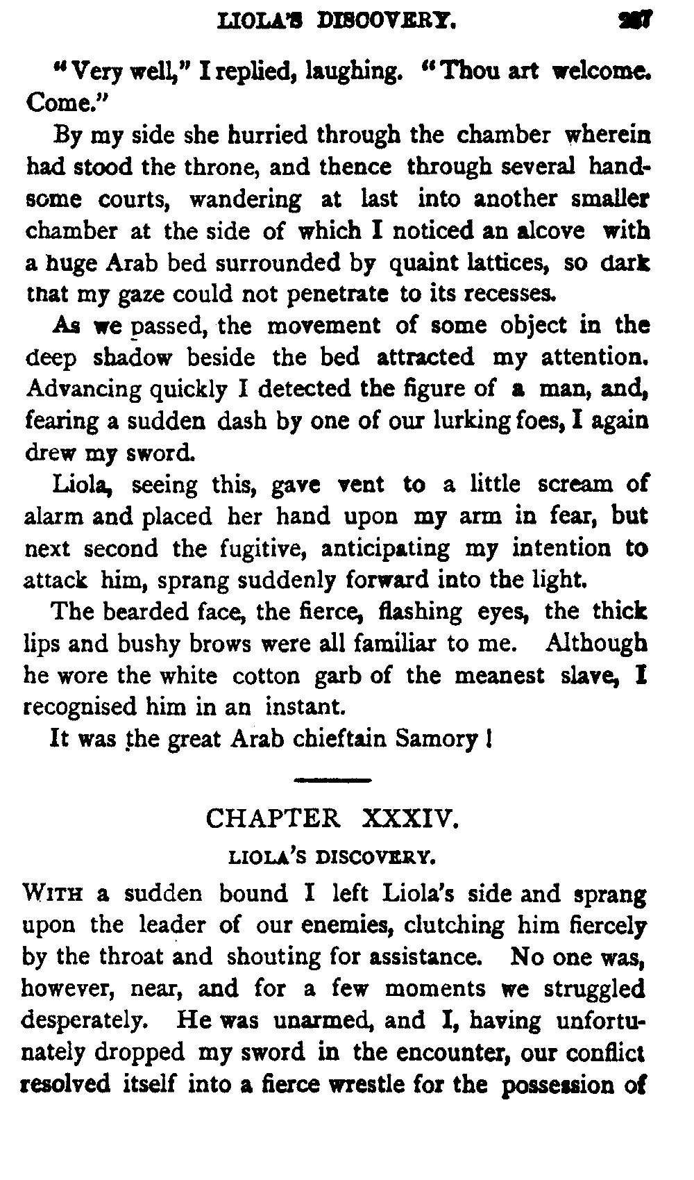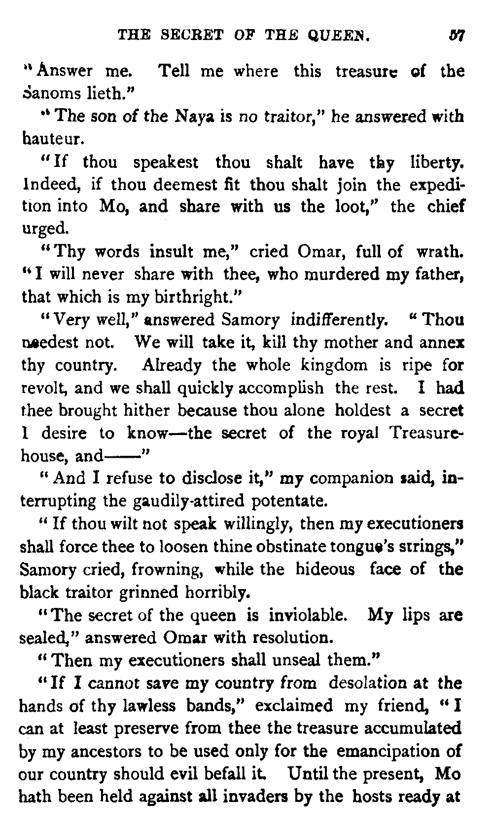 Twice or thrice each year the elderly negro who had first brought him to the school visited him, and they were usually closeted a long time together. Perhaps his sable-faced guardian on those occasions told him news of his relatives; perhaps he gave him good advice. Which, I know not. The man, known as Mr. Makhana, was always very pleasant towards me, but never communicative. Yet he made up for that defect by once or twice leaving half-a-sovereign within my ready palm. He appeared suddenly without warning, and left again, even Omar himself being unaware where he dwelt.