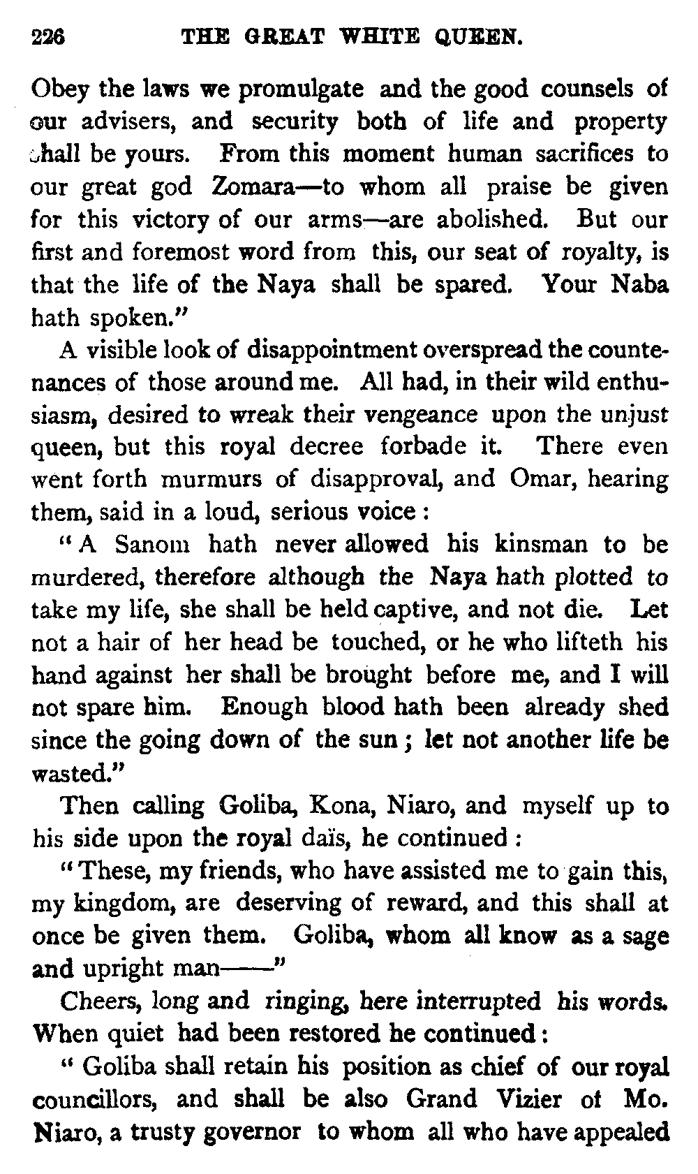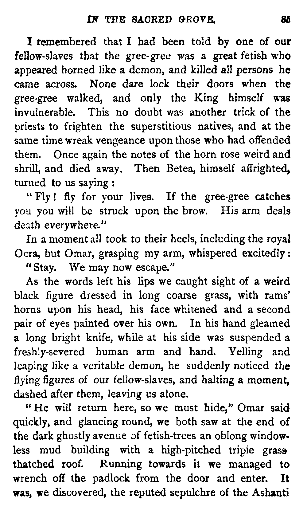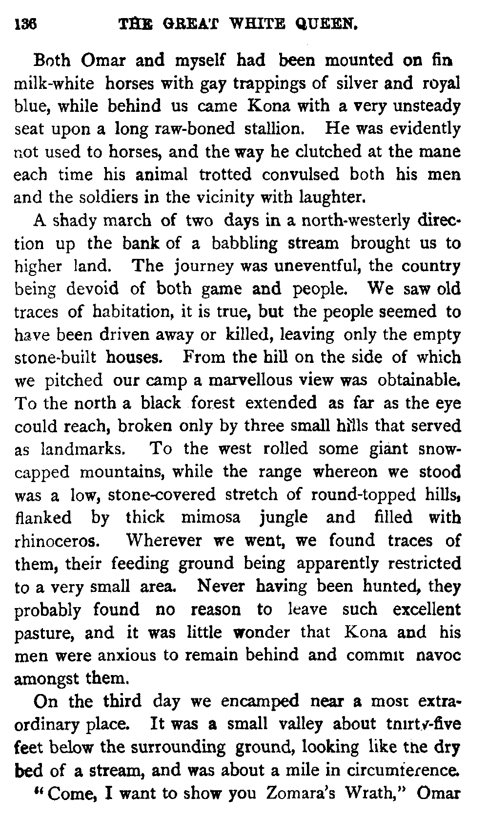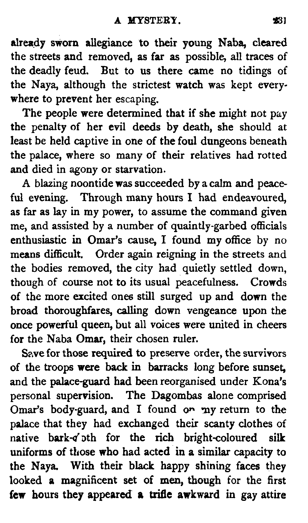 Twice or thrice each year the elderly negro who had first brought him to the school visited him, and they were usually closeted a long time together. Perhaps his sable-faced guardian on those occasions told him news of his relatives; perhaps he gave him good advice. Which, I know not. The man, known as Mr. Makhana, was always very pleasant towards me, but never communicative. Yet he made up for that defect by once or twice leaving half-a-sovereign within my ready palm. He appeared suddenly without warning, and left again, even Omar himself being unaware where he dwelt.