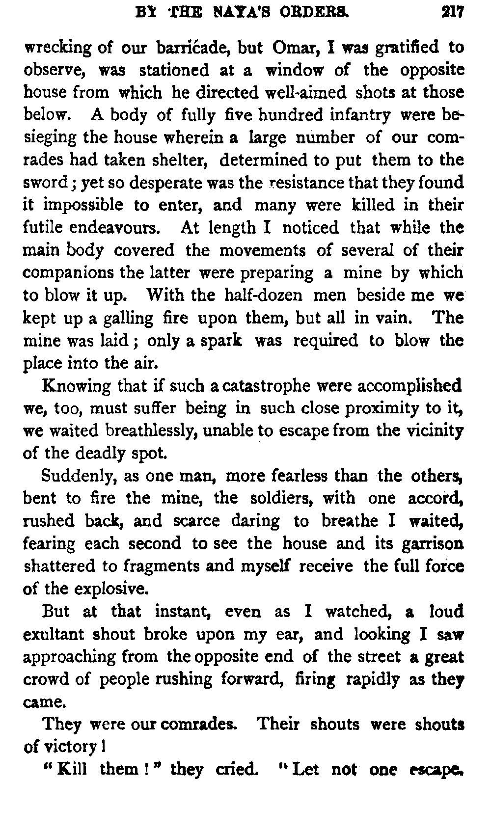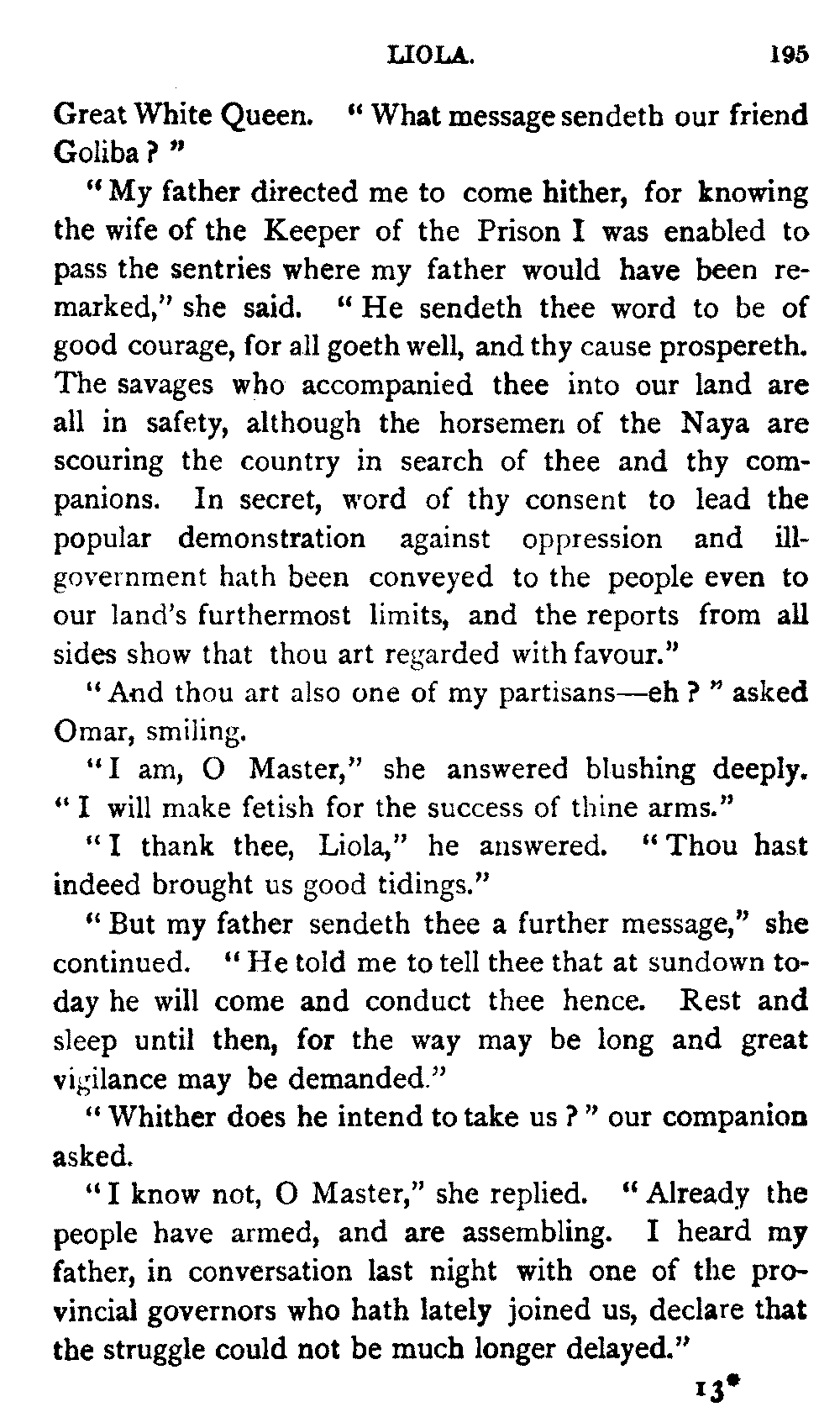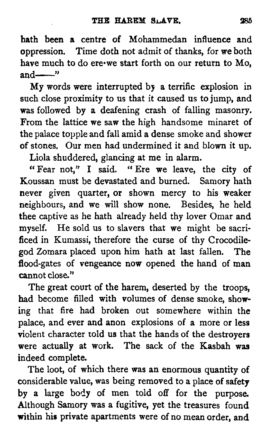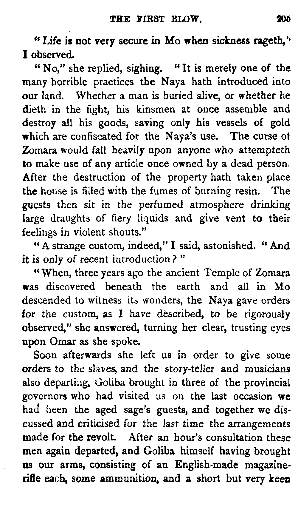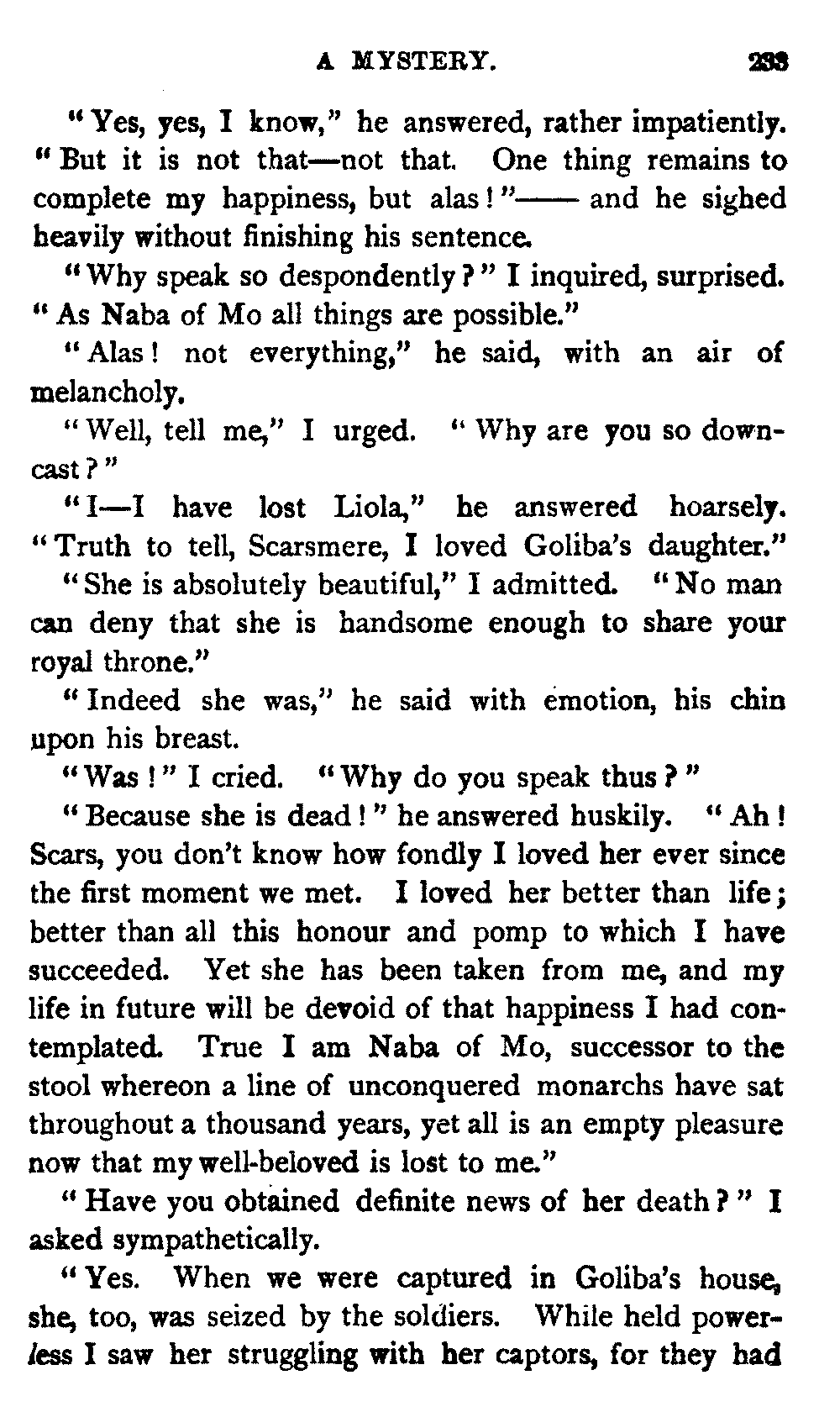 Twice or thrice each year the elderly negro who had first brought him to the school visited him, and they were usually closeted a long time together. Perhaps his sable-faced guardian on those occasions told him news of his relatives; perhaps he gave him good advice. Which, I know not. The man, known as Mr. Makhana, was always very pleasant towards me, but never communicative. Yet he made up for that defect by once or twice leaving half-a-sovereign within my ready palm. He appeared suddenly without warning, and left again, even Omar himself being unaware where he dwelt.