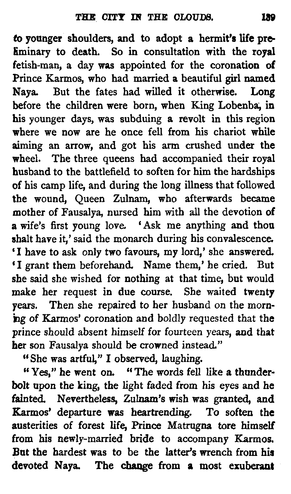 Around his neck beneath his clothes he wore a sort of necklet composed of a string of tiny bags of leather, in which were sewn certain hard substances that could be felt inside. Even in the dormitory he never removed this, although plenty of chaff was directed towards him in consequence of this extraordinary ornament. It was popularly supposed that he came from some savage land, and that when at home this string of leather bags was about the only article of dress he wore.