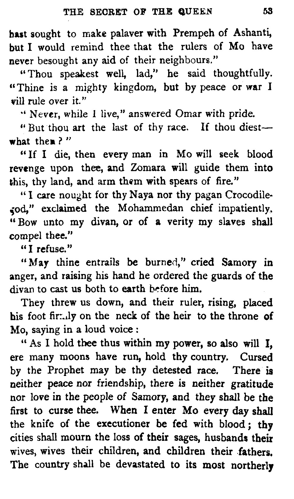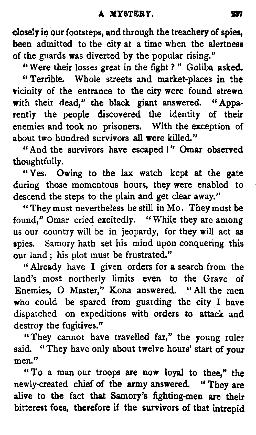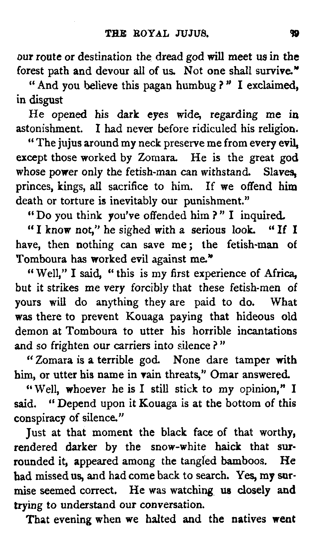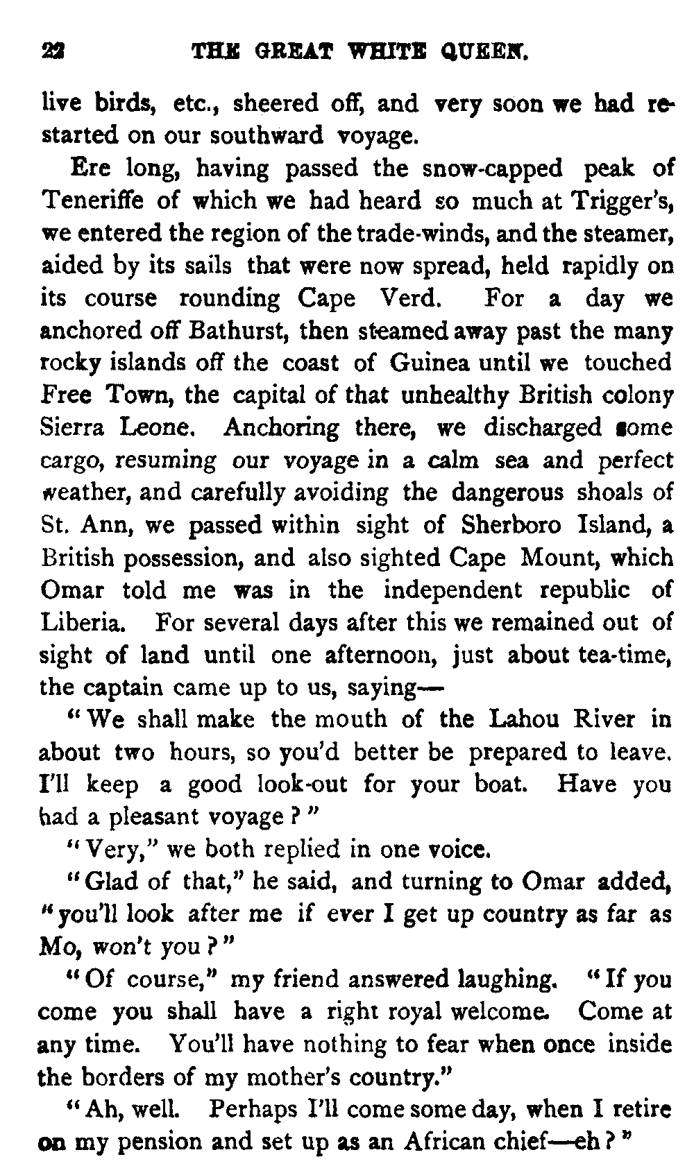 [5] For quite a month it was a subject of much discussion as to which of the five continents Omar came from, until one day, while giving a geography lesson the master, who had taken the West Coast of Africa as his subject, asked: