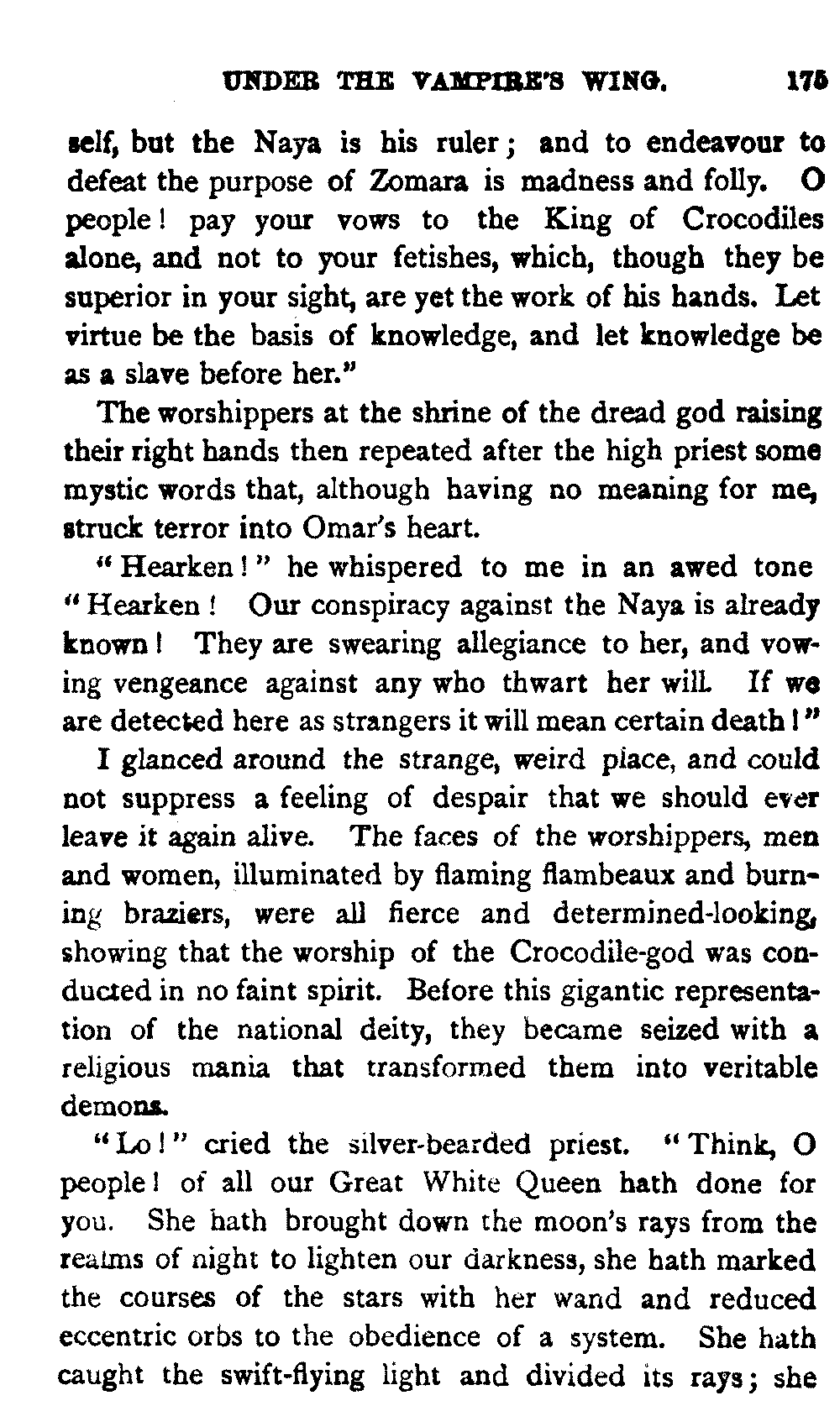 Omar had been at Trigger's a little over two years when a strange incident occurred. We were then both aged about sixteen, he a few months older than myself. The summer holidays had come round again. I had a month ago visited my uncle in London, and he had given me to understand that after next term I should leave school and commence life in the City. He took me to his warehouse in Thames Street and showed me the gas-lit cellar wherein his clerks were busy entering goods and calling out long columns of amounts. The prospect was certainly not inviting, for I was never good at arithmetic, and to spend one's days in a place wherein never a ray[9] of sunshine entered was to my mind the worst existence to which one could be condemned.