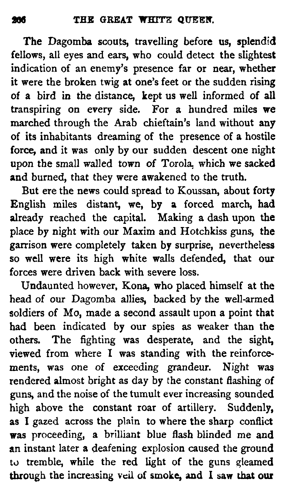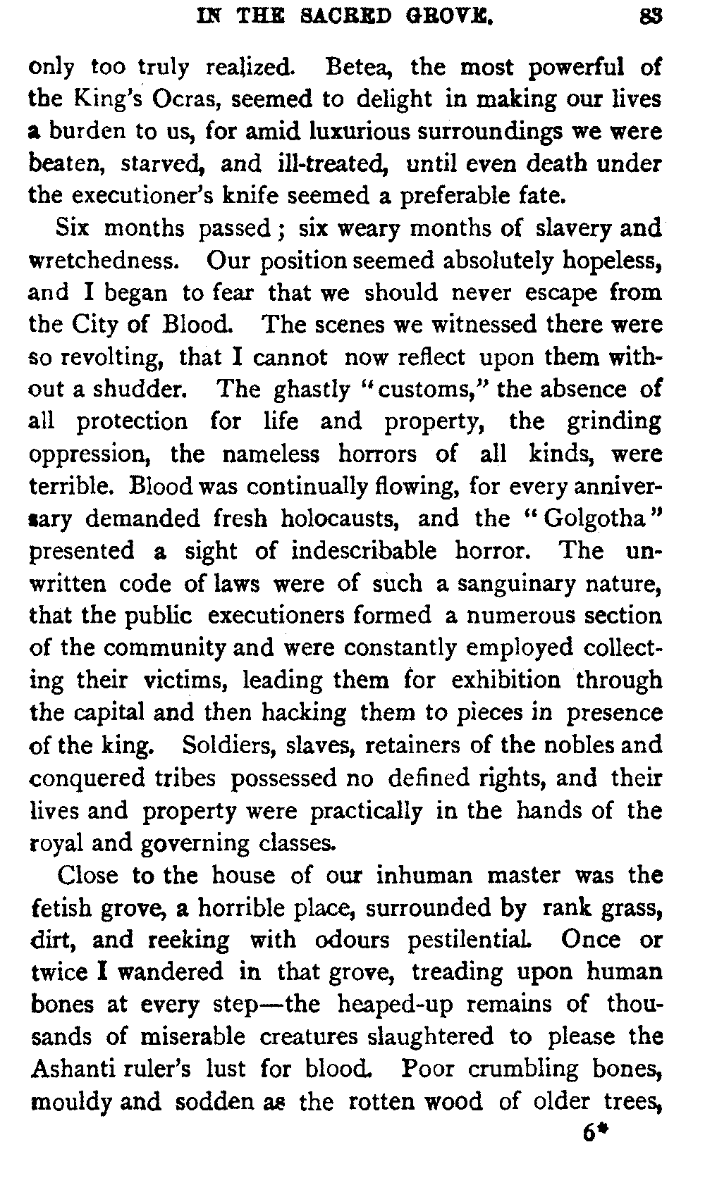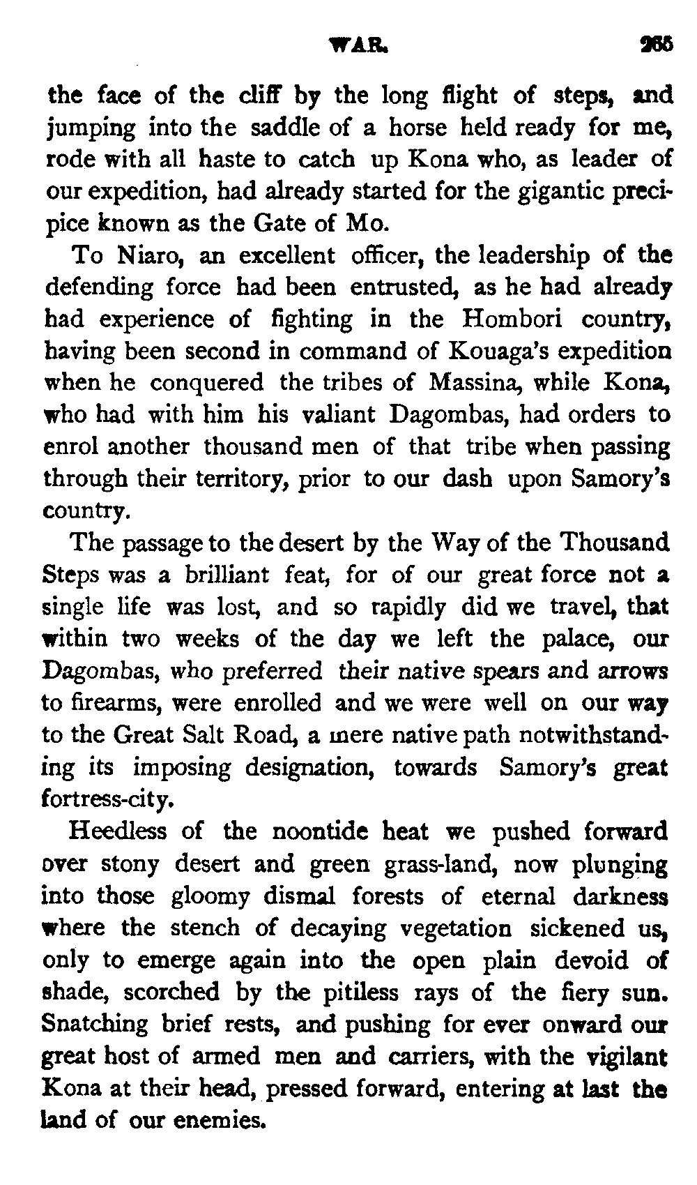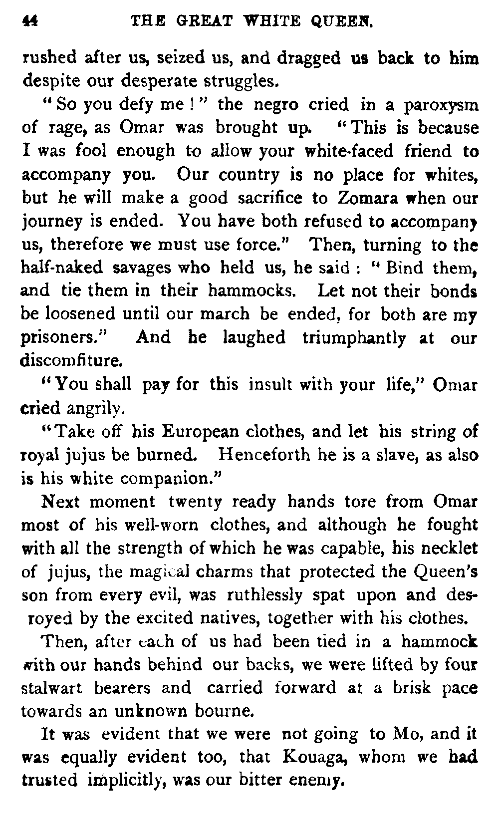 We did our best to pump him and ascertain whether he had been born in Guinea, but he carefully avoided the subject. The information that he came from the West Coast of Africa had evidently been given us quite involuntarily. He had been asked a question about a spot he knew intimately, and the temptation to exhibit his superiority over us had proved too great.