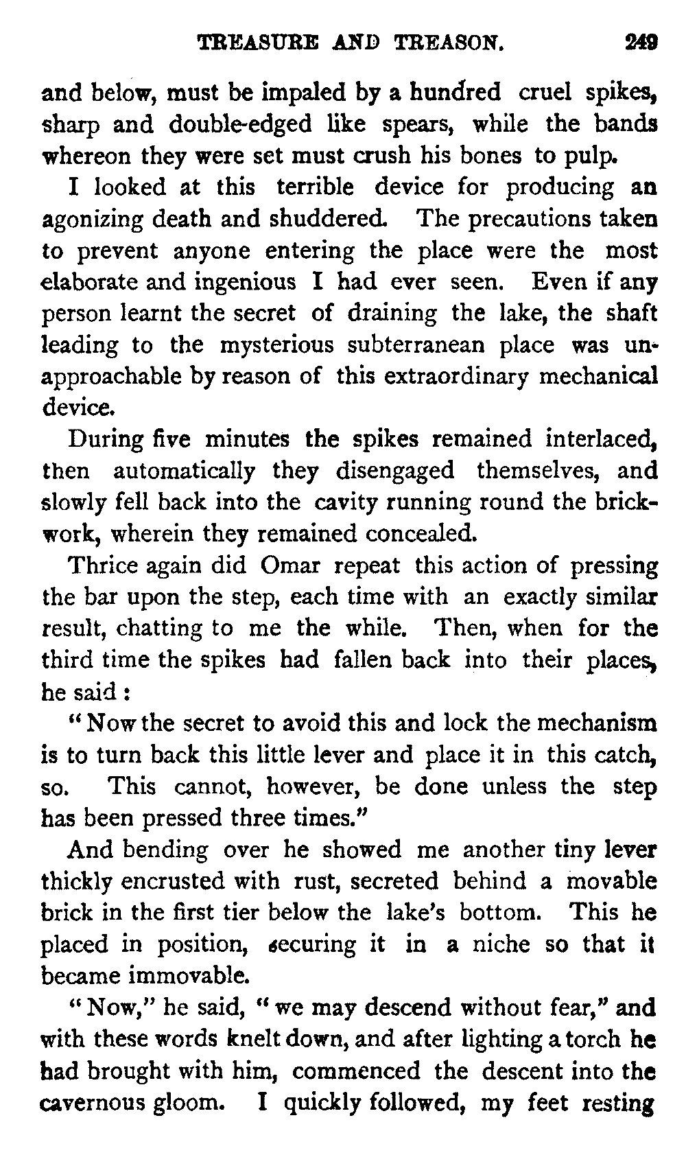 Like myself, Omar seemed friendless, for when the summer holidays came round both of us remained with the Doctor and his wife, while the more fortunate ones always went away to their homes. At first he seemed downcast, but we spent all our time together, and Mrs. Tregear, it must be admitted, did her best to make us comfortable, allowing us to ramble where we felt inclined, even surreptitiously supplying us with pocket-money.