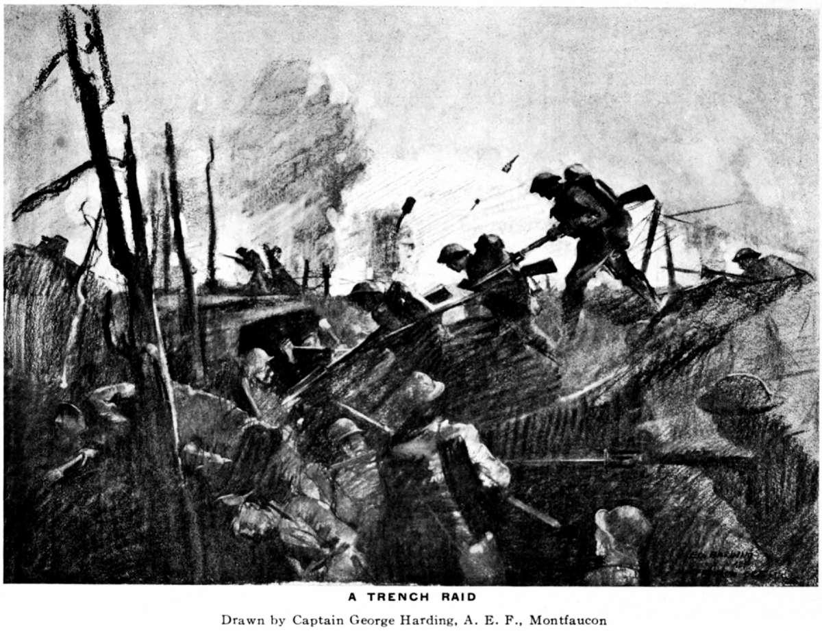 A TRENCH RAID Drawn by Captain George Harding, A. E. F., Montfaucon |