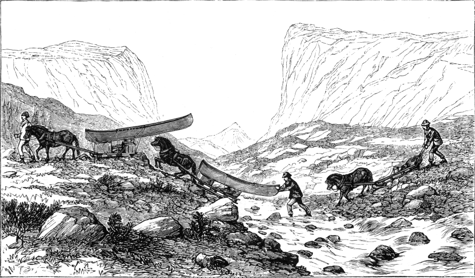 When the aforesaid was all on board, there did not appear to be much room for anything else in the steamship ‘Angelo;’ registering 1,300 tons; yet this vast pile was destined to travel many miles over a desperately rough country in the two little canoes.