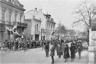La population accourue se précipite, plutôt hostile, car elle vient d'apercevoir des uniformes d'officiers allemands; fort heureusement, les officiers français prennent aussitôt des dispositions pour éloigner la foule et faciliter l'atterrissage définitif de l'aéronat. Une compagnie cycliste assure le service d'ordre, quand les autorités arrivent sur les lieux.