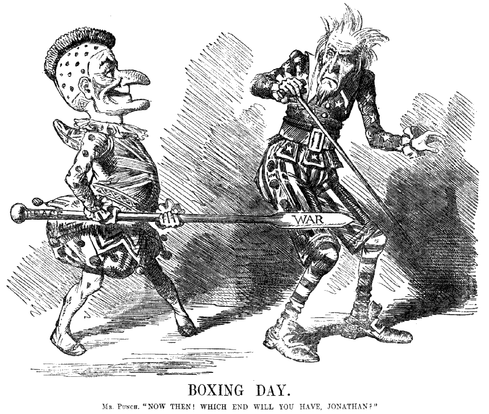 Up to, and even immediately after the war, Punch's sympathies professedly leaned towards the North, though it took occasion to lecture both sides from the standpoint of a disinterested and superior friend, who saw that neither side was absolutely and unconditionally right.