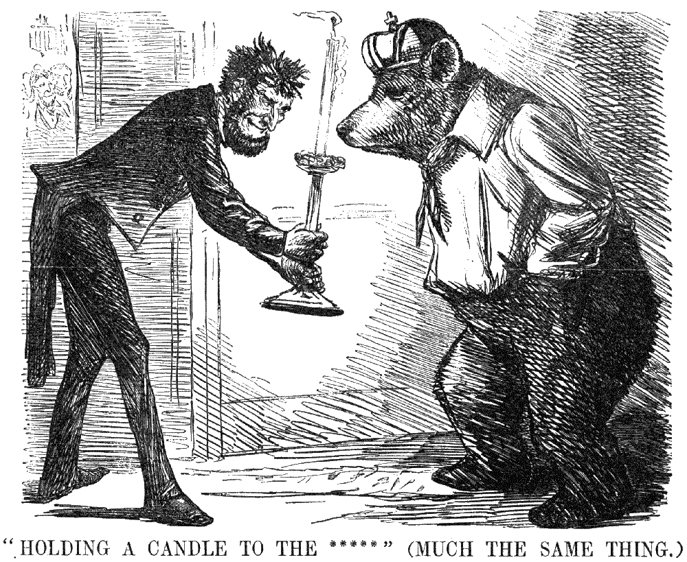 Perhaps the effect would have been less if we on this side had known how grudgingly the amende was offered. Mr. A. H. Layard in his recent "Life of Shirley Brooks" has invited us to take a peep behind the Punch curtain. He shows that the editorial staff of the paper was divided in the matter, Shirley Brooks leading the opposition against the publication of the poem. In Brooks' diary Mr. Layard discovered the following entry:—