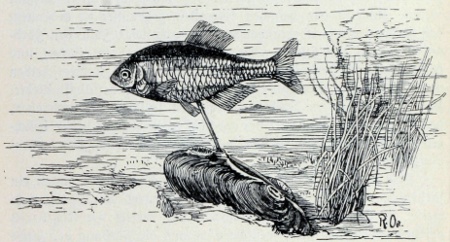 Bitterling mit Malermuschel. (Nach einer Zeichnung von R. Oeffinger.)