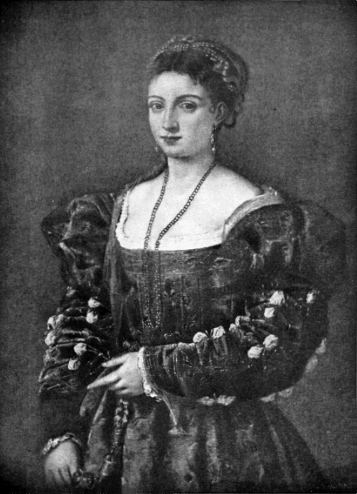 3. The Empress Isabella. Probably one of the two pictures referred to in a letter of 1544 from Titian to Charles V. In the Prado Gallery, Madrid. Size: 3 ft. 10 in. by 3 ft. 2½ in.