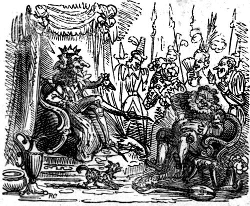 I may with great propriety contend, that under such merry designation, I am addressing a very large portion of the British public. If, beneath your patronage, this little work should prove as[Pg vi] successful as the flattering anticipations of some friendly adepts in the art of punning have induced me to expect, it is my intention to collect and publish, annually, all the choicest Morceaux and Vagaries relating to punning that can be obtained from the wits and witty works of our own times: for which purpose I solicit communications of original Puns and Epigrams, directed to my Publishers. In arranging the present work, I have endeavoured to bring together all that was important to a proper understanding of the Merry Art; to which are annexed examples by the most celebrated Punsters of their day; many of which now, for the first time, appear in print. Illustrated by fourteen original and appropriate designs, from that mirth-inspiring graphic humourist, Robert Cruikshank.