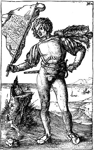 3 This method, earlier than that of the incised line, led to engraving "in camaïeu," which was skilfully practised in Italy and Germany during the sixteenth century. As in camaïeu engraving those lines which define the contours are left as ridges by the cutting away of the surrounding surface, we may say that in this method (which the Italians call "chiaroscuro") the usual processes of engraving in relief are employed. But it is a further object of camaïeu to produce on the paper flat tints of various depths: that is to say, a scale of tones somewhat similar to the effect of drawings washed in with Indian ink or sepia, and touched up with white. Now such a chromatic progression can only be arrived at by the co-operation of distinct processes. Therefore, instead of printing from a single surface, separate blocks are employed for the outlines, shadows, and lights, and a proof is taken by the successive application of the paper to all these blocks, which are made to correspond exactly by means of guiding marks.