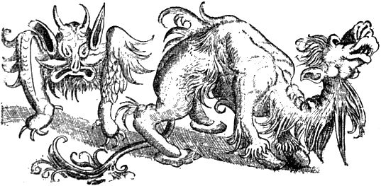 We just mention by way of note the process which produced those rare specimens called "empreintes en pâte." All specimens of this work are anterior in date to the sixteenth century, and belong less strictly to art than to industry, as the process only consisted in producing on paper embossed designs strongly suggesting the appearance of ornaments in embroidery or tapestry. To produce these inevitably coarse figures a sort of half-liquid, blackish gum or paste was introduced into the hollow portions of the block before printing. On the block thus prepared was placed a sheet of paper, previously stained orange, red, or light yellow, and the paste contained in the hollow places, when lodged on the paper, became a kind of drawing in relief, something like an impasto of dark colour. This was sometimes powdered with a fluffy or metallic dust before the paste had time to harden.