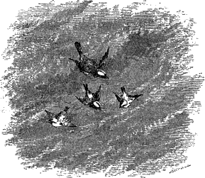 Die tijd van liefde en broeden is een tijd van onrust en vasten. Hun vijand, de blauwe vos, vervolgt hen in de eenzaamheid; maar eendracht maakt macht: een heirleger van wakende vaders, gereed om zich te offeren omringt de gezamenlijk broedende moeders. En als éénmaal het jong uitkomt, en door de gesloten gelederen wordt meegevoerd, dan gooit het zich in zee en is gered!