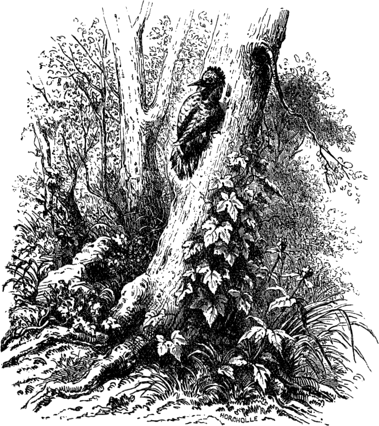 Deze 8ste Fransche druk, waarnaar de vertolkster haar bewerking gemaakt heeft, dateert van 1867.—Deze twee cijfers worden gegeven om den lezer te waarschuwen, indien de aard van de oorspronkelijke illustraties (die wij, naar ons formaat ietwat verkleind, in onze uitgaaf brengen) met hun romantisch waas het niet genoegzaam zouden doen, dat hij hier een werk voor zich heeft uit een vroeger tijdvak, een werk niet van wetenschap allereerst, maar van aandoening; openbaring van inzicht in de natuur, waarbij het gevoel en de verbeelding den schrijver leidden meer nog dan streng onderzoek, doch dat juist door die eigenschappen niet zal nalaten des lezers liefde voor de natuur aan te wakkeren en hem te boeien door de beschrijvingskunst van den dichterlijken prozaïst. Deze drie straks genoemde werken van Michelet hebben in de Fransche letterkunde der 19de eeuw hun eigen plaats verworven; zijn er bijkans „klassiek” geworden. Moge deze Nederlandsche bewerking ervan velen onzer landgenooten, die èn de natuur èn de letterkunde liefhebben, doen meêgenieten van „den rijken oogst der Natuur,” die den schrijver zelf, naar zijn opdracht aan zijne echtgenoote, door háar bereid was.