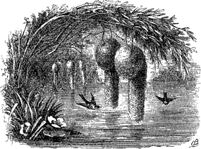 Of ook, lettende op hun groote voeten, zoo dicht aan het lichaam, op hun korten hals geplaatst op een grooten cylindervormigen romp, en hun afgeplatten kop, zoo zou men hen haast beschouwen als maagschap van de robben, van wie zij echter niet de intelligentie hebben, maar wèl den goeden aard.