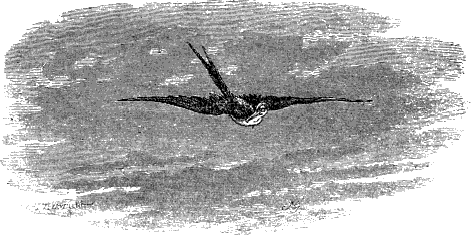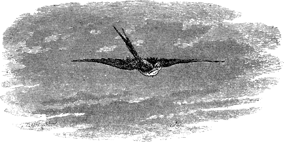 Het mislukt en noodlottig fabrikaat stond ondanks zijn doorwrocht samenstel te ver af van dien verwonderlijken arm, die met zijne krachtige en snelle beweging, verkregen door zijn onderling samenwerkend spierstelsel, den menschelijken arm zoover overtreft. Den menschvleugel, los en onsamenhangend, ontbrak het in hoofdzaak aan den krachtigen spier, die den schouder verbindt aan de borst, en den geweldigen vleugelslag voortbrengt bij de luchtverslindende vlucht van den valk. Het werktuig is zoo één met de beweegkracht, de riem met den roeier, dat de gierzwaluw, de fregatvogel, 80 mijlen maken in het uur; zij overtreffen den orkaan, en alléén de bliksem is hun mededinger.