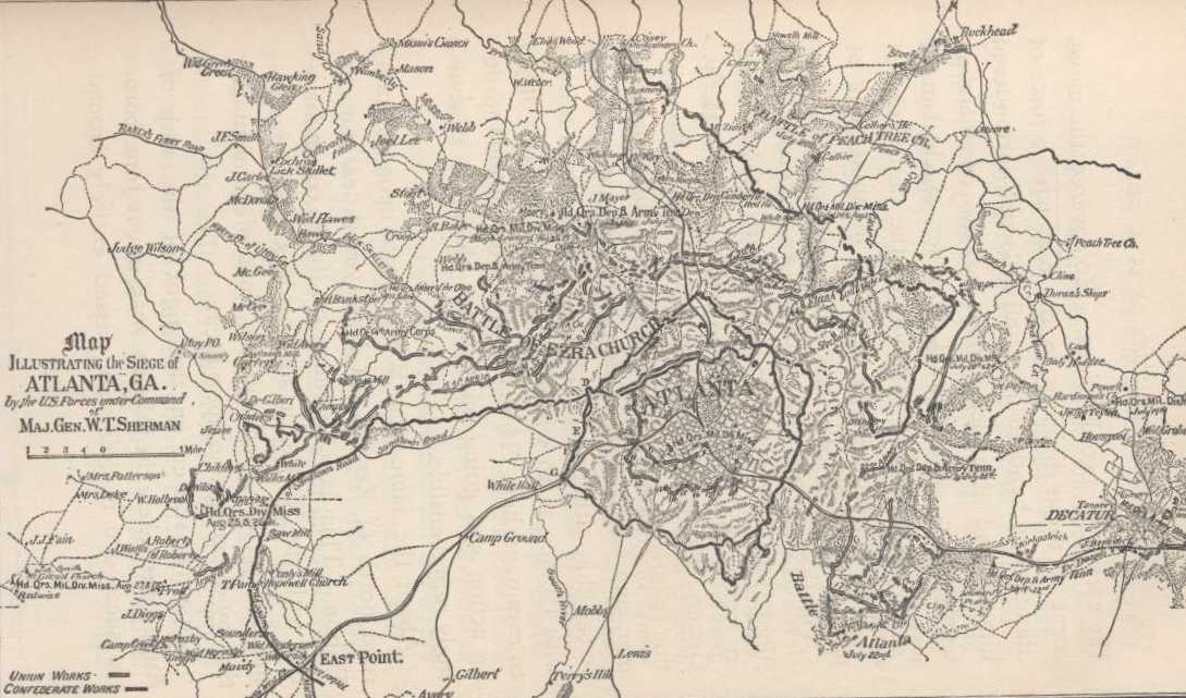 By the 1st of February, General Sherman's whole army was in motion from Savannah. He captured Columbia, South Carolina, on the 17th; thence moved on Goldsboro', North Carolina, via Fayetteville, reaching the latter place on the 12th of March, opening up communication with General Schofield by way of Cape Fear River. On the 15th he resumed his march on Goldsboro'. He met a force of the enemy at Averysboro', and after a severe fight defeated and compelled it to retreat. Our loss in this engagement was about six hundred. The enemy's loss was much greater. On the 18th the combined forces of the enemy, under Joe Johnston, attacked his advance at Bentonville, capturing three guns and driving it back upon the main body. General Slocum, who was in the advance ascertaining that the whole of Johnston's army was in the front, arranged his troops on the defensive, intrenched himself and awaited reinforcements, which were pushed forward. On the night of the 21st the enemy retreated to Smithfield, leaving his dead and wounded in our hands. From there Sherman continued to Goldsboro', which place had been occupied by General Schofield on the 21st (crossing the Neuse River ten miles above there, at Cox's Bridge, where General Terry had got possession and thrown a pontoon-bridge on the 22d), thus forming a junction with the columns from New Bern and Wilmington.