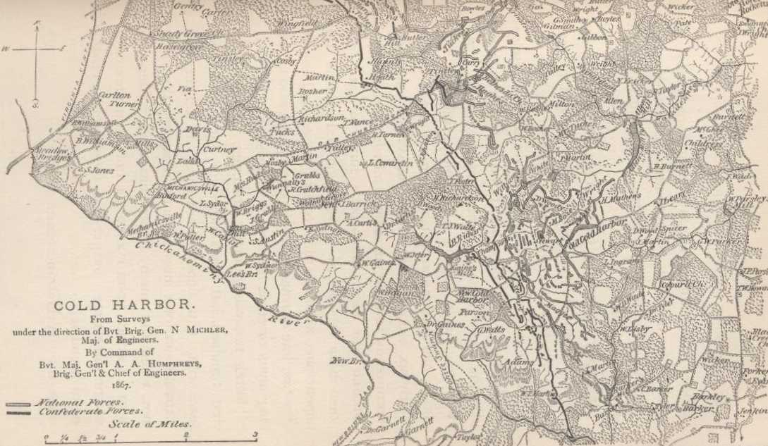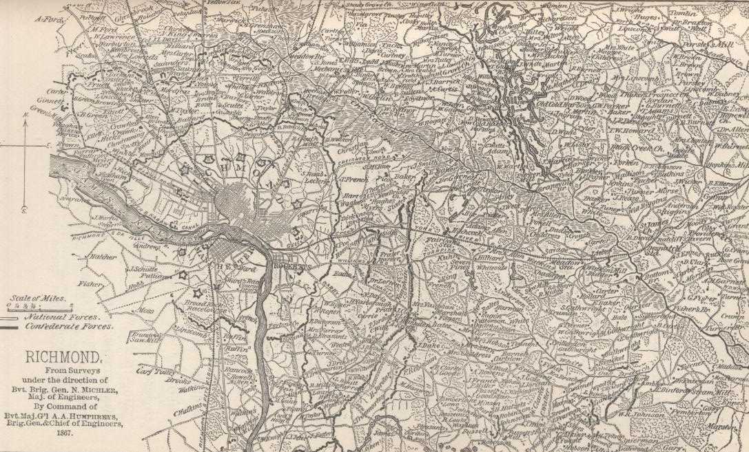 After the long march by General Sheridan's cavalry over winter roads, it was necessary to rest and refit at White House. At this time the greatest source of uneasiness to me was the fear that the enemy would leave his strong lines about Petersburg and Richmond for the purpose of uniting with Johnston, and before he was driven from them by battle, or I was prepared to make an effectual pursuit. On the 24th of March, General Sheridan moved from White House, crossed the James River at Jones's Landing, and formed a junction with the Army of the Potomac in front of Petersburg on the 27th. During this move, General Ord sent forces to cover the crossings of the Chickahominy.