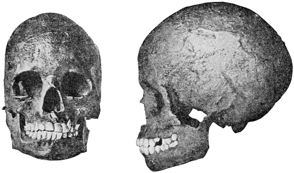 Interest in human evolution centres chiefly in the skull and in the brain. The slope of the forehead and the other angles, which are so important in forming an estimate of the brain capacity, may be directly compared throughout this volume, because the profile or side view of every skull figured is placed in exactly the same relative position, namely, on the lines established by the anatomists of the Frankfort Convention to conform to the natural pose of the head on the living body.