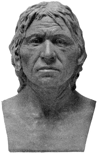 [AS] Despite Schwalbe's statement, the supraorbital ridges in this skull appear to form a complete bridge. Doctor Hrdlička regards the related Předmost skull as distinctly showing Neanderthaloid affinity.