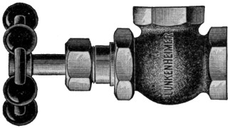 The safety valve is a valve held in place by a weighted lever2 or by a spiral spring (on traction engines) or some similar device, and is adjustable by a screw or the like so that it can be set to blow off at a given pressure of steam, usually the rated pressure of the boiler, which on traction engines is from 110 to 130 pounds. The valve is supplied with a handle by which it can be opened, and it should be opened occasionally to make sure it is working all right. When it blows off the steam gauge should be noted to see that it agrees with the pressure for which the safety valve was set. If they do not agree, something is wrong; either the safety valve does not work freely, or the steam gauge does not register accurately.