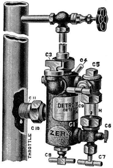 Two injectors are furnished with this engine, and the use of the injector is recommended, contrary to the general belief that a pump is more economical. The company contends that the long exhaust pipe causes more back pressure on the cylinder than would be represented by the saving of heat in the heater. However, a cross-head pump and special condensing heater will be furnished if desired.