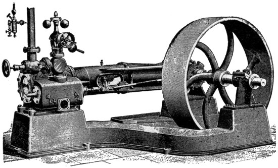 5. If you want my personal advice on the proper engine to select for various purposes, I should say by all means get a gasoline engine for small powers about the farm, such as pumping, etc. It is the quickest to start, by far the most economical to operate, and the simplest to manage. The day of the small steam engine is past and will never return, and ten gasoline engines of this kind are sold for every steam engine put out. If you want a traction engine for threshing, etc., stick to steam. Gasoline engines are not very good hill climbers because the application of power is not steady enough; they are not very good to get out of mud holes with for the same reason, and as yet they are not perfected for such purposes. You might use a portable gasoline engine, however, though the application of power is not as steady as with steam and the flywheels are heavy. In choosing a traction steam engine, the direct flue locomotive boiler and simple engine, though theoretically not so economical as the return flue boiler and compound engine, will in many cases prove so practically because they are so much simpler and there is not the chance to go wrong with them that there is with the others. If for any reason you want a very quick steamer, buy an upright. If economy of fuel is very important and you are prepared to make the necessary effort to secure it, a return flue boiler will be a good investment, and a really good compound engine may be. Where a large plant is to be operated and a high power constant and steady energy is demanded, stick to steam, since the gasoline engines of the larger size have not proved so successful, and are certainly by no means so steady; and in such a case the exhaust steam can be used for heating and for various other purposes that will work the greatest economy. For such a plant choose a horizontal tubular boiler, set in masonry, and a compound engine (the latter if you have a scientific engineer).