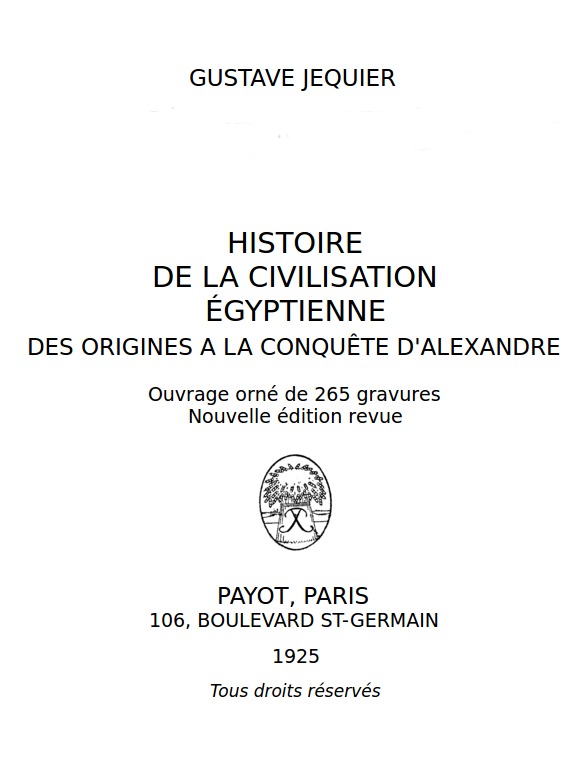 Le but de ce petit livre est de réagir contre ces idées erronées, d’étudier successivement toutes les grandes étapes de la civilisation égyptienne, de montrer les progrès réalisés peu à peu malgré les secousses et les changements de régime, en groupant les résultats acquis autour d’un rapide aperçu de l’histoire elle-même, comme aussi d’indiquer la naissance des arts, des industries, des différentes branches de la civilisation égyptienne, leur expansion progressive dans les pays limitrophes, et la part qui leur revient dans le développement de la culture générale.