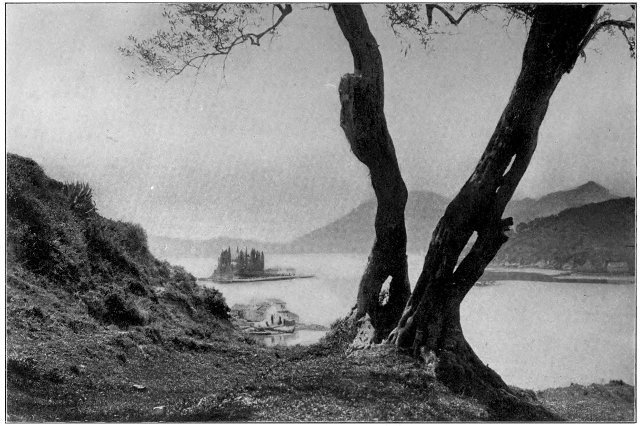It was not bad taste for the King of Greece to put his gardens on the spot of the Gardens of Alkinoos. If I were King of Greece I would try to compound with my subjects to take the business of ruling off my hands and let me keep my Corfu home. It is no wonder that Elizabeth, the Empress of Austria, sought relief from her troubles in her villa on the other side of the inner harbor.