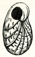 Get a pea-nut with as large a top to it as possible, like Fig. 1. Paint or mark with your pen a round spot as you see it represented, and make little marks on the shell to indicate feathers. To represent the wings, all you need is a small piece of common tissue-paper, which you must cut the shape of Fig. 2, and spatter with ink; this is pasted on the back of your pea-nut.