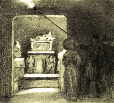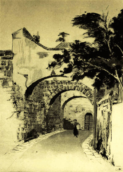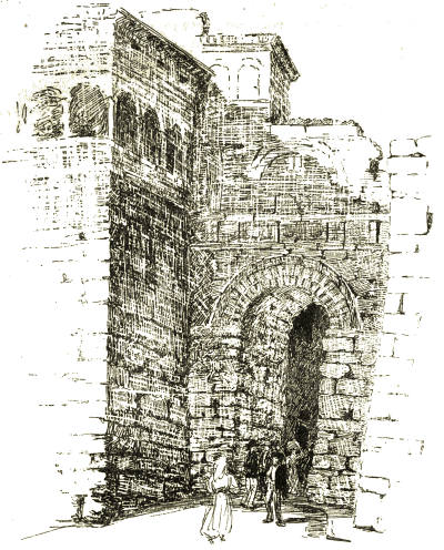 Surely the earlier Gods must wonder at the fate of this small country town, which was renowned among the ancients not so much for the greatness of its history, as for the beauty of its monuments and the art of its brass-workers, but which was destroyed in the name of Christ in the year 1014, nearly nine centuries ago! It is a strange story. How the Viterbesi, arrogant and always on the watch to increase their power as a commune, razed the little episcopal city of Ferento to the ground, because it persisted in the heresy of representing Christ upon the cross with His eyes open (after the manner of the Byzantines) instead of closed!