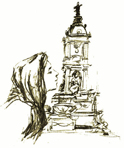 But perhaps it was because we came so lately from Umbria, sweet-scented, golden Umbria, where the only shadows are the heavy veils of night or the shifting reflections of sunlit clouds, that our hearts sank in Rome. We had bid our loves good-bye so lightly, looked our last upon their beauties, and shut their little voices up by miles of empty plain. Perhaps too we had caught something of the spirit of the simple country folk who clasped their hands and sighed over the splendid city of their imagination.