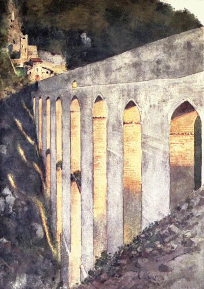 It was in Foligno, seeing that fair white road which threads the rich valley of Spoleto, now skirting the Hill of Trevi, now leading through the olive gardens of Le Vene to the crystal springs of Clitumnus, that we first began to think of Rome. Up to that time we had not raised our eyes to the horizon. The beauty of the road itself had led us on, but now, though she was still far off, we felt once more the magnetism of the great Mother of Cities. Truly in Italy every road must lead to Rome. Many times we had been greeted with the words,'E Roma? Andate ancora a Roma?'—in little Passignano that gazes like Narcissus into the mirroring waters of Thrasymene, rapt in the contemplation of her own beauty; in far-off Gubbio, wistful and forlorn in the shadow of her great hills; in San Marino, the eagle nest where Liberty has taken refuge upon a mountain top. And when we told our simple questioners that we knew the city well, they pressed to hear what she was like, this città bella e magnifica, whose light shining upon their horizons they perhaps might never see. We had not dreamed that she was so[354] beloved. But at the oft-reiterated question some flame of enthusiasm, which we had thought quenched, began to burn again, and Rome became the secret goal of our pilgrimage, until we thrilled to see that white road leading through the plain from the walls of Foligno, because it had become the symbol and expression, as it were, of our desires.