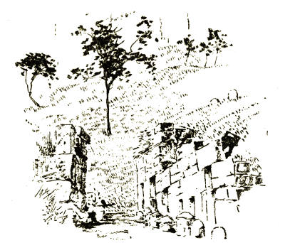 Still we wound up the hillside, and presently we came upon two wind-blown oaks, the only watchers at that city's gates, beside a rough stone wall, built by some shepherd to prevent his sheep from breaking in upon the sleeping silence of Ferentinum. It was a city of the dead, deserted save for the lizards fleeing from our footsteps, and a few white butterflies dancing above the mullein stalks.
