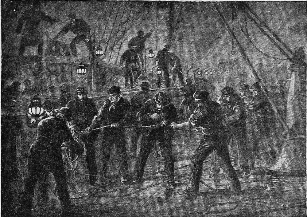 [35] This was some of the cable damaged during the storm, like that which had been broken at the end of the previous attempt. The bottom of the hold here was found afterward to be in a very disordered state.