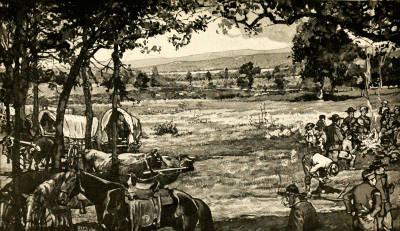 Our way was over the hills which overlook the head waters of the sleepy Desplaines. Touched with a glimmer of pathos at the golden dawn, Arthur and I stopped to listen to my wife's sentimental refrain: