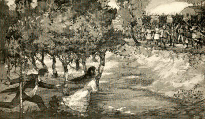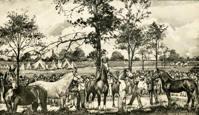 "Not so long ago the red men with their squaws and papooses gathered here, when the leaves were falling, to celebrate their autumn pow-wow, feasting on wild rice, berries and venison, never dreaming that a pale-faced foe lurked on an unknown shore who would soon appear to drive them far away from their own hunting ground, never more to return to join in the chase or the young braves to woo the sun-burned Indian maids."