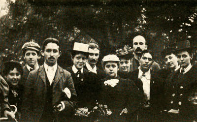 Accordingly, as the autumn sun was casting its last gleam through the old oaks we seven men grouped for a picture, by a neighbor lady, who declared it would be nice for the survivors, if any, to look at after they had become weaker and wiser.