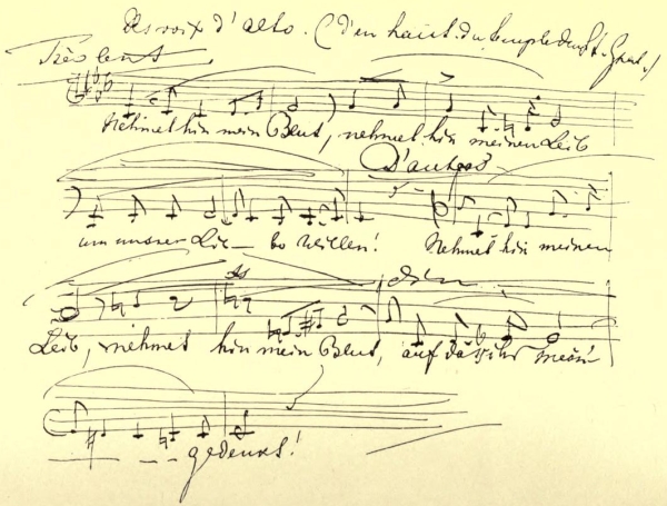 EXTRACT FROM ONE OF WAGNER'S LETTERS TO MADAME GAUTIER, SHOWING PART OF SCORE OF THE LAST ACT OF "PARSIFAL."