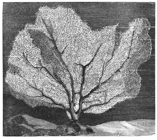 The learned Schleiden eloquently paints the living wonders of the deep: "If we dive into the liquid crystal of the Indian Ocean, the most wondrous enchantments are opened to us, reminding us of the fairy tales of childhood's dreams. The strangely-branching thickets bear living flowers. Dense masses of Meandrineas and Astreas contrast with the leafy, cup-shaped expansions of the Explanarias, and the variously-branching Madrepores, now spread out like fingers, now rising in trunk-like branches, and now displaying an elegant array of interlacing tracery. The colouring surpasses everything; vivid greens alternate with brown and yellow; rich tints, ranging from purple and[vi] deepest blue to a pale reddish-brown. Brilliant rose, yellow, or peach-coloured Nullipores overgrow the decaying masses: they themselves being interwoven with the pearl-coloured plates of the Retipores, rivalling the most delicate ivory carvings. Close by wave the yellow and lilac Sea-fans (Gorgonia), perforated like delicate trellis-work. The bright sand of the bottom is covered with a thousand strange forms of sea-urchins and star-fishes. The leaf-like Flustræ and Escharæ adhere like mosses and lichens to the branches of coral—the yellow, green, and purple-striped limpets clinging to their trunks. The sea-anemones expand their crowns of tentacula upon the rugged rocks or on flat sands, looking like beds of variegated ranunculuses, or sparkling like gigantic cactus blossoms, shining with brightest colours.
