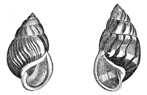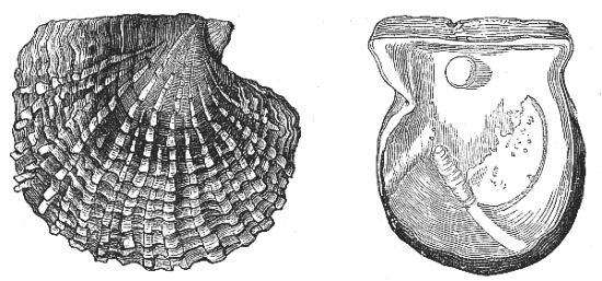 [9] We give this illustration as representing the comparative size of the oysters at different ages; but it is necessary to state that the specimens were artificially attached to the block by means of glue for exhibition. Oysters always attach themselves by the back of the rounded shell near to the hinge, as stated at p. 363.