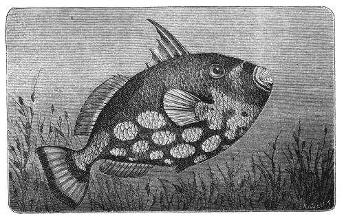 "Around the branches of the coral shrubs play the humming-birds of the ocean: little fishes sparkling with red or blue metallic glitter, or gleaming in golden green or brightest silvery lustre; like spirits of the deep, the delicate milk-white jelly-fishes float softly through the charmed world. Here gleam the violet and gold-green Isabelle, and the flaming yellow, black, and vermilion-striped Coquette, as they chase their prey; there the band-fish shoots snake-like through the thicket, resembling a silvery ribbon glittering with rose and azure hue. Then come the fabulous cuttle-fishes, in all the diaphanous colours of the rainbow, but with no definite outline.