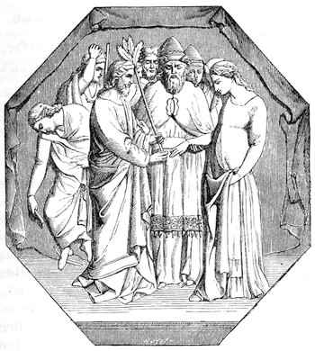 From a Fresco, by Spinelli d'Arezzo, in the Church of San Miniato, near Florence. | |